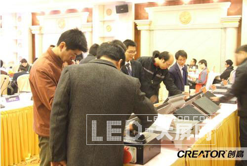 在會議現場的舞臺中央展示的室內全彩LED顯示屏,是CREATOR創高最新推出的P系列的全彩LED顯示屏產品,它采用目前最新LED三合一SMD貼片技術,搭配先進的驅動技術,達到1000HZ的刷新率,消除顯屏的頻閃現象,使全彩LED顯示屏的顯示畫面色彩更逼真豐富。讓該系列室內全彩LED顯示屏快速推至市場并引起轟動,CREATOR創高室內全彩LED顯示屏之所以得到市場的肯定,主要是因為其高刷新頻率、高亮度、高清晰度彩幕、高性價比、且高信賴性,可以讓客戶在良好的成本掌控下,輕松升級顯示屏技術,提升競爭力。