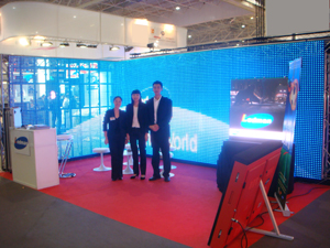 此次展會,是一次具體體現(xiàn)雷曼光電與公司戰(zhàn)略客戶緊密合作,實(shí)現(xiàn)雙贏的典范合作,所有展品第一次均由客戶配合提供。有我司最新研發(fā)的戶內(nèi)3528黑美人高對比度P4mm顯示屏,P10mm插件里爾俱樂部的球場屏,以及我司傳統(tǒng)產(chǎn)品P37.5mm的戶內(nèi)網(wǎng)格屏。該次展會也為我司以后的國外參展模式提供了新的借鑒方向。
