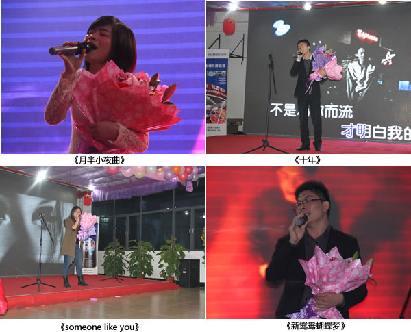 十幾個節目各具特色,精彩紛呈,尤其是《上海灘》、《只要有你》、《至少還有你》等把年會的氣氛推向了高潮。外貿部員工《someone like you》讓大家體會到了英文歌曲的魅力。穿插在比賽中的抽獎環節,讓現場氣氛一節節攀升,將整個年會的氣氛推向了新的高潮。
