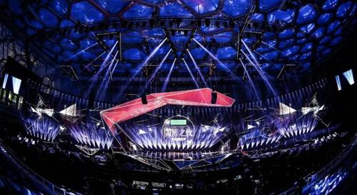 搭建在水立方泳池上的舞臺,以水晶切割面形成的“C”形半包圍式立體造型裝飾舞臺。這個造型連起了地面屏、兩側傾斜向前的LED。可發光部分呼應于舞臺表演、燈光、影像,幾面鏡面材質反射現場環境。恩維傳媒舞臺視覺設計師就是依據整個舞臺造型進行視覺畫面的整體設計。