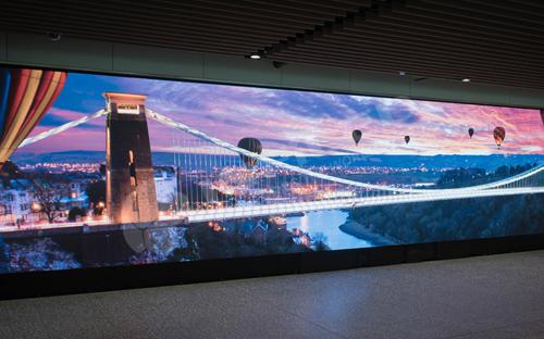 英國布里斯托爾機場顯示屏使用視爵S2.4產品組成了一個總長14米、高2.5米的應用,完美無瑕的拼接和高清明麗的顯示效果給過往者帶來了極致視覺體驗,同時屏上會不斷播放目的地天氣、人文風情、風景名勝等內容,為乘客打造了一個身處此境、連接彼境的互動平臺,展示出更貼心、更溫暖的服務,為數字標牌產業的發展做出了積極的貢獻。